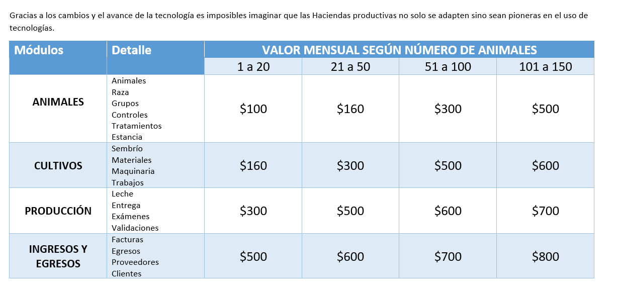 Tener disponible toda la información de los productos que la hacienda entrega y sus respectivos ingresos y egresos